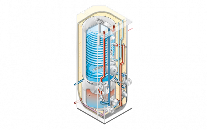 Die Kombispeicher dienen als Schnittstelle zwischen Heizsystem und Heiznetz im Gebäude, ausgestattet mit einem Trinkwasser- und Pufferanteil. Wo meist wenig Platz zur Verfügung steht sind Kombispeicher eine ideale Lösung. Eine hochwirksame Spezial-Wärmedämmung sorgt für geringe Wärmeverluste. Dank ihrer Flexibilität ist mit diesen Speichern auch eine Solareinbindung möglich – so dass die Kraft der Sonne mitheizen kann.